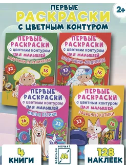 Первые раскраски с цветным контуром. Набор из 4-х книг