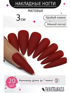 Бордовые Накладные ногти красные с клеем