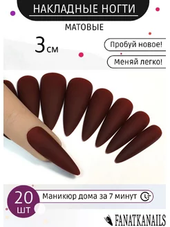 Бордовые Накладные ногти длинные с клеем