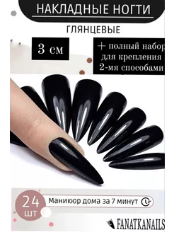 Накладные ногти черные длинные с клеем