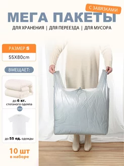 Большие пакеты с завязками для переезда, хранения и мусора