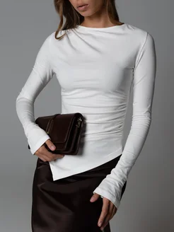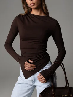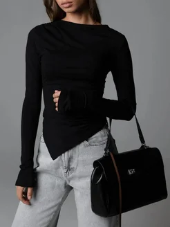 Лонгслив обтягивающий с рукавом клеш и асимметричным низом