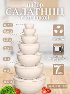Набор пластиковых мисок и салатников с крышками 7 шт