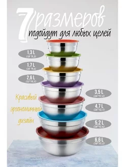 Набор пластиковых салатников и мисок с крышками 7 шт