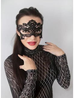 Маска кружевная на лицо на глаза ажурная черная