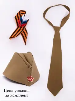 Набор Пилотка,Брошь Георгиевская лента и галстук на 9 мая