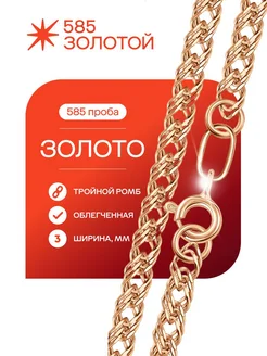 Цепочка на шею золотая 585 пустотелый Бисмарк