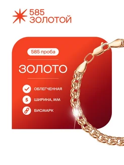 Цепочка на шею 585 Золотой пустотелый Бисмарк золото 585