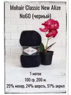 Пряжа для вязания Mohair Classic New 60 черный 1 моток