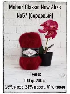 Пряжа для вязания Mohair Classic New 57 бордовый 1 моток