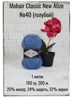 Пряжа для вязания Mohair Classic New 40 голубой 1 моток