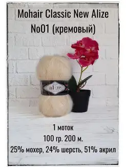 Пряжа для вязания Mohair Classic New 01 кремовый 1 моток