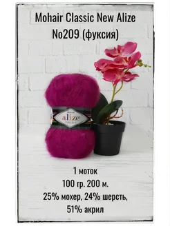 Пряжа для вязания Mohair Classic New 209 фуксия 1 моток