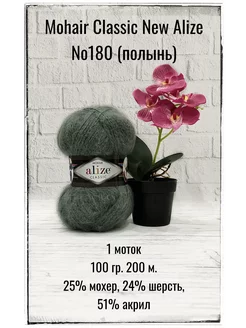 Пряжа для вязания Mohair Classic New 180 полынь 1 моток