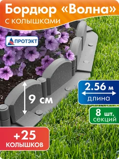 Бордюр садовый для клумб Волна с колышками, длина 2,56 м