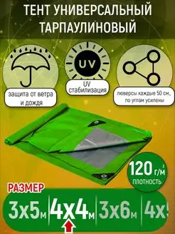 Тент универсальный 4х4м, с люверсами, 120 г м.кв