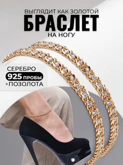 Браслет на ногу серебро 925 позолоченный ювелирный