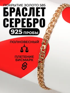 Серебряный браслет 925 на руку позолоченный