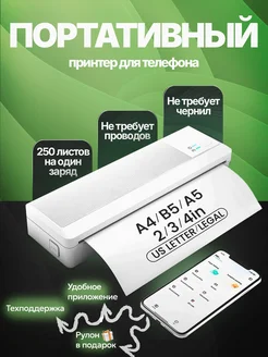 Портативный беспроводной термопринтер А4 для телефона