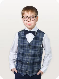 Жилет синий школьный в клетку