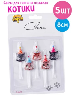 Свечи для торта с Днем рождения котики 8см, 5шт