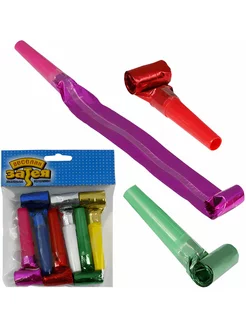 Карнавальный язычок свистелка, язычок-гудок из фольги 6 штук