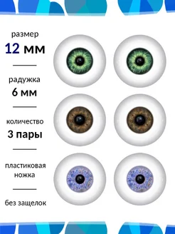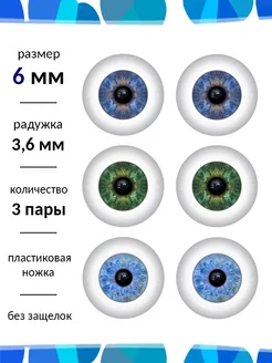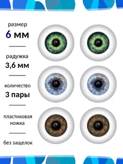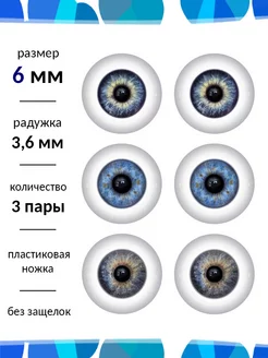 Глаза для кукол и игрушек 6 мм набор 3 пары