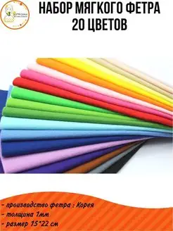 Набор мягкого корейского фетра 20 цветов 15х22 см