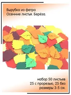 Листья березы 3-4 см Набор 50 штук Вырубка из фетра