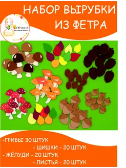 Грибы, шишки, жёлуди, листья. Вырубка из фетра