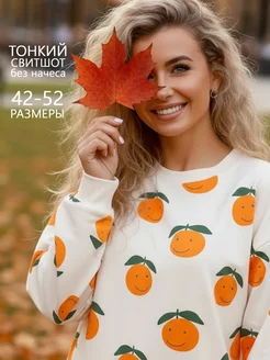 Тонкий свитшот хлопковый оверсайз с принтом без начеса
