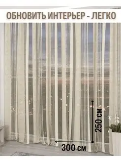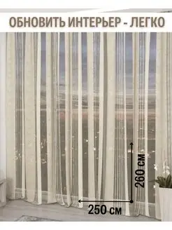 Тюль бежевый в гостиную 250х260 органза жатка для комнаты