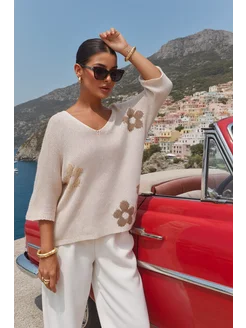 Нарядный джемпер с люрексом и бусинами под жемчуг