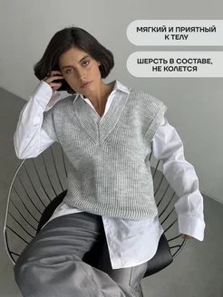 Жилет женский утепленный вязаный жилетка безрукавка офисная
