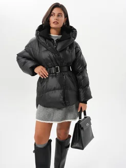 Пуховик зимний короткий черный с капюшоном