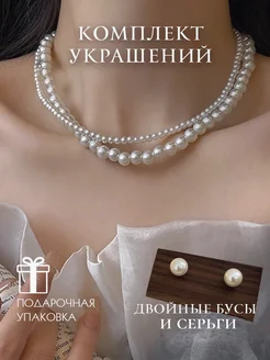 Бусы жемчуг бижутерия на шею женская серьги ожерелье