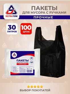 Пакеты для мусора с ручками и завязками 100шт 30л
