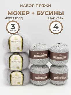 Пряжа MoherGold мохер и BeadYarn c бусинами для вязания