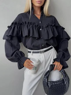Рубашка блузка нарядная хлопковая с воланами рюшами