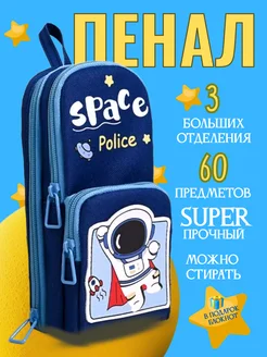Пенал рюкзачок школьный на молнии 3 отделения Космонавт