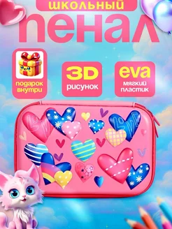 Пенал школьный большой на молнии 3д твёрдый прикольный