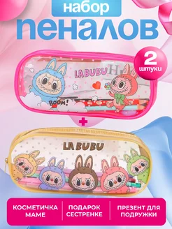 Пенал школьный - косметичка 2 шт набор прозрачный прикольный