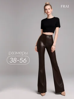 Брюки клеш кожаные классические от колена с высокой посадкой