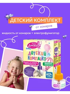 Комплект от комаров детский 60 ночей, электрофумигатор+жидко…