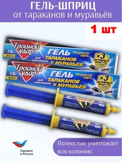 Гель от тараканов и муравьёв Тройной удар mini шприц 15г-2шт