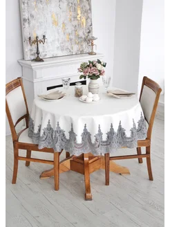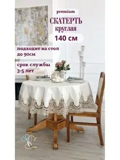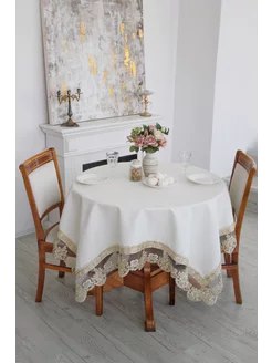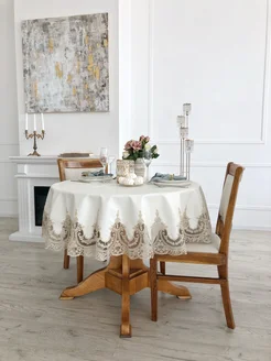 скатерть белая с кружевом на круглый стол 140 см