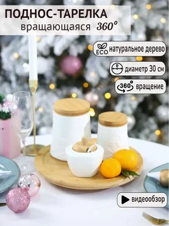 Поднос деревянный круглый крутящийся 30 см