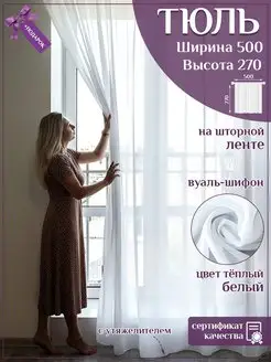 Тюль вуаль шифон 500х280 готовая белая на ленте