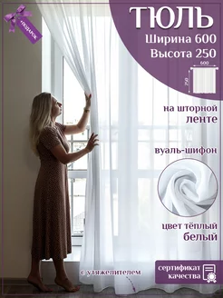 Тюль вуаль шифон 600х250 готовая белая на ленте