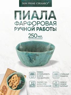 Пиала керамическая фарфоровая ручной работы, бирюзовая